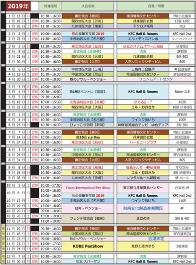 ¹ñÆâ¤Ç¤Ï¡¢£²Æü´Ö³«ºÅ¤ÎKOBE Pen Show¡Ê°ìÇñ¡Ë¤È¡¢½©ÅġʰìÇñ¡Ë¤À¤±¤¸¤ã¡£Ä¹ºê¤Ïº£¤Þ¤ÇÆóÇñ¤·¤Æ¤¤¤¿¤Î¤À¤¬¡¢Æüµ¢¤ê¤Ç¤¤ë¤³¤È¤¬¤ï¤«¤Ã¤¿¡£