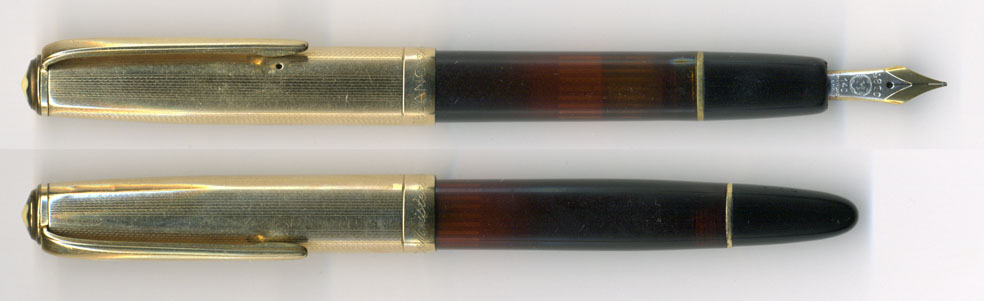 ¡¡º£²ó¤Î°ÍÍêÉʤÏMontblanc No.146¡£²èÁü¤Ç¤ï¤«¤ë¤È¤ª¤ê1950ǯÂå¤Î¥â¥Ç¥ë¤¸¤ã¡£²áµî¤Î·ÇºÜ¥í¥°¤ò¸«¤¿¤È¤³¤í¡¢Montbanc¡ÜPelikan¤ÎÆÈ°ïÀª¤¬°µÅݤ·¤Æ¤¤¤ë¤¬¡¢¤½¤ÎÃæ¤Ç¤âMontblanc¤¬Pelikan¤Î2ÇܤۤɤϤ¢¤í¤¦¤«¡¦¡¦¡¦¡£