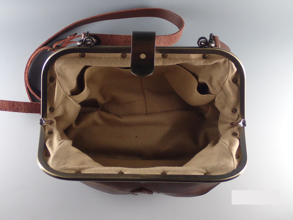 こちらの車掌鞄にはケースに入れた万年筆が20本以上と、大型モバイルバッテリー、iPhone、ティッシュ、カメラなどが楽々と入ります。ちょっとした外出時に実に便利です。特にふたが大きく開くので、細々とした物をごちゃごちゃに入れるには便利です。
