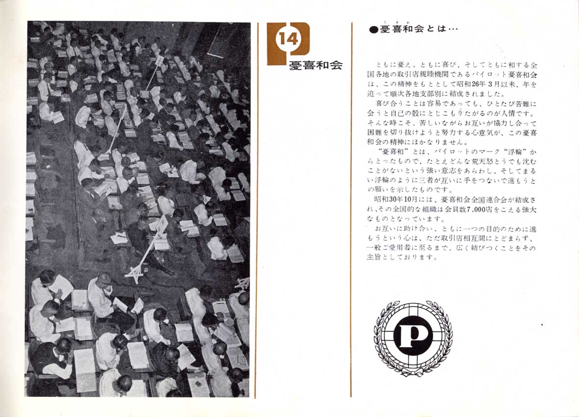 そうなると・・・憂喜和(うきわ)会というより憂和喜(うわき)会のようですね。もっともパイロット一筋、パイロット万年筆しか置いていません・・・なんて気骨のある販売店があったら面白かったんですが。昔は今にくらべてブランド志向がやや希薄であったと思われますので、やはり無理なのでしょうね。