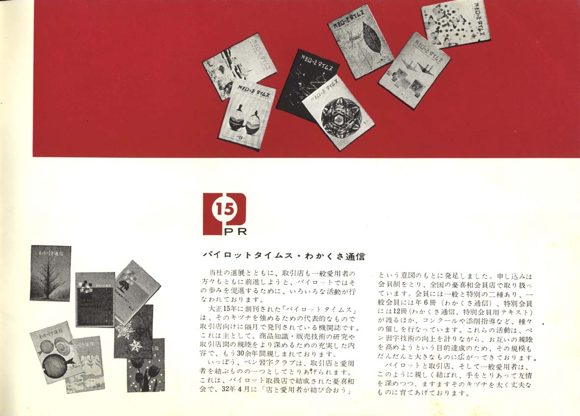 上の頁と下の最終頁との間には、福利厚生施設や初任給の情報を示した3頁が挟まれている。万年筆とは直接関係無いので省いたが、当時のパイロットの大卒初任給が18,100円。当時サラリーマンをしていた拙者の父の手取りが3万円で、村一番の金持ちじゃった・・・ことから考えれば、相当の初任給ではなかったのかな?営業職はこれ以外にも様々な特典があったと聞いた。時代の最先端を行く業種だったのじゃろう。