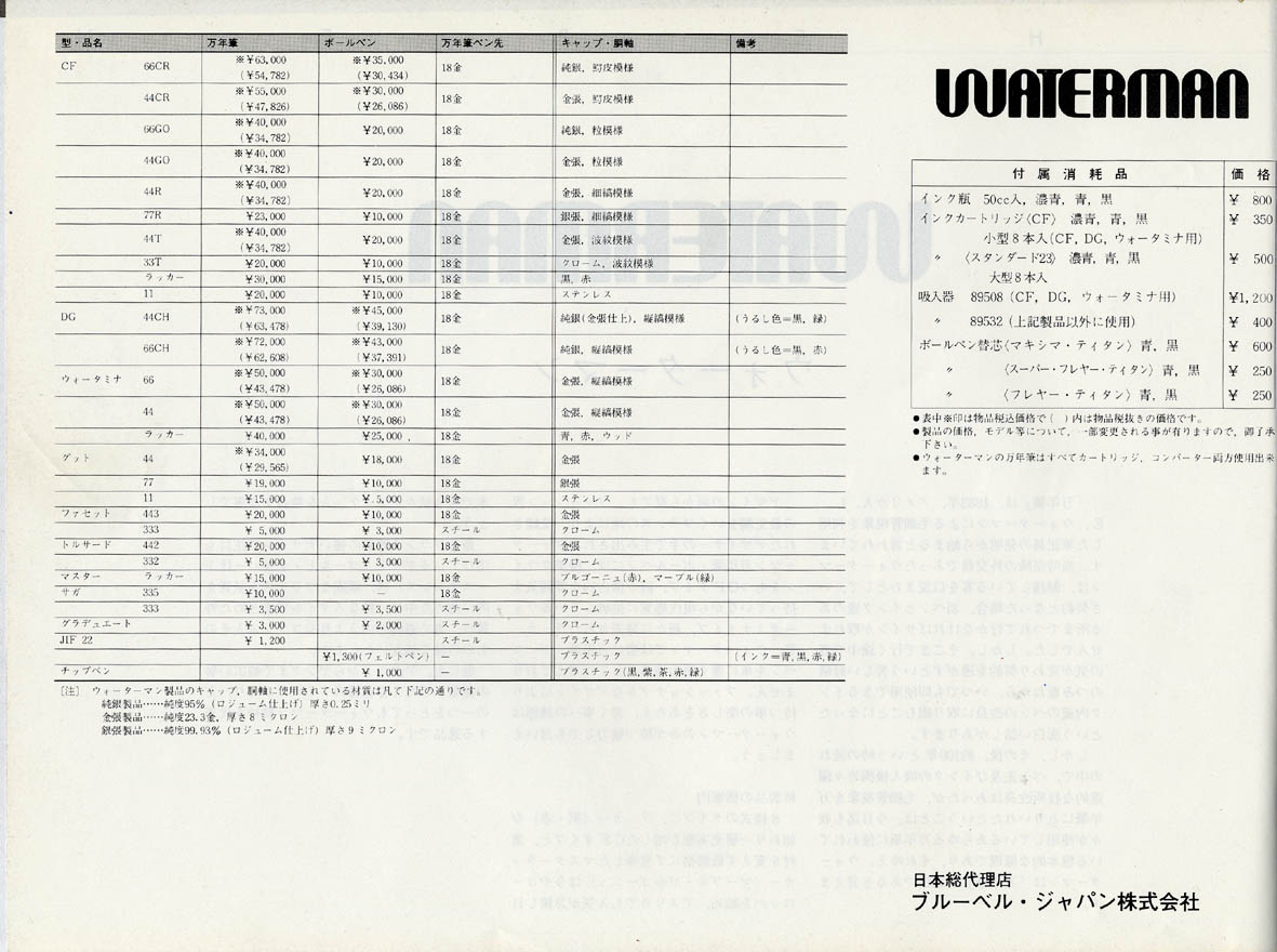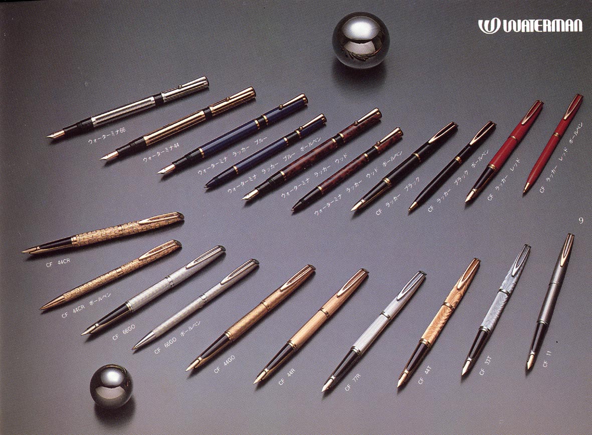 【ウォーターマンでは常に万年筆・ボールペンを単に書く為の道具とは考えておりません。ファッショナブルなデザインにより持つ事の楽しさをあたえ、書く事への誘惑はウォーターマンのみが持つ魅力とでも言えましょう】。日本語として多少違和感があるが、内容はすばらしい!