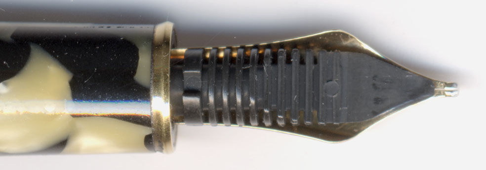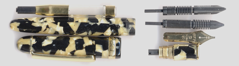 これが2006年4月20の記事の時点じゃ。それ以降はプラチナ・カーボンインクを入れて使っていたのじゃが、エボナイト製ペン芯とカーボンインクの相性が良くないのか、サラサラと書くというよりはネットリと書く感じになる。重くて長いペンの場合は、ネットリ系の方が気持ちよく書けるのだが、軽い胴体の万年筆にネットリとした書き味だと疲れてしまう。