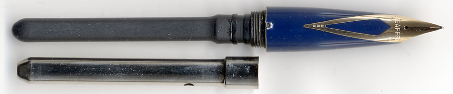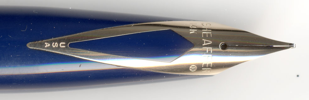 通常のフラットなニブの場合、多少ペン先外側を削ってもそれほど大きな変化はおきないものだが、Sheafferの上に反っているニブの場合は差が顕著になる。インクをつけて書いてみると・・・まさにフェザータッチ!この書き味を体験して初めて上に反ったニブの効用を感じることが出来るのじゃ!