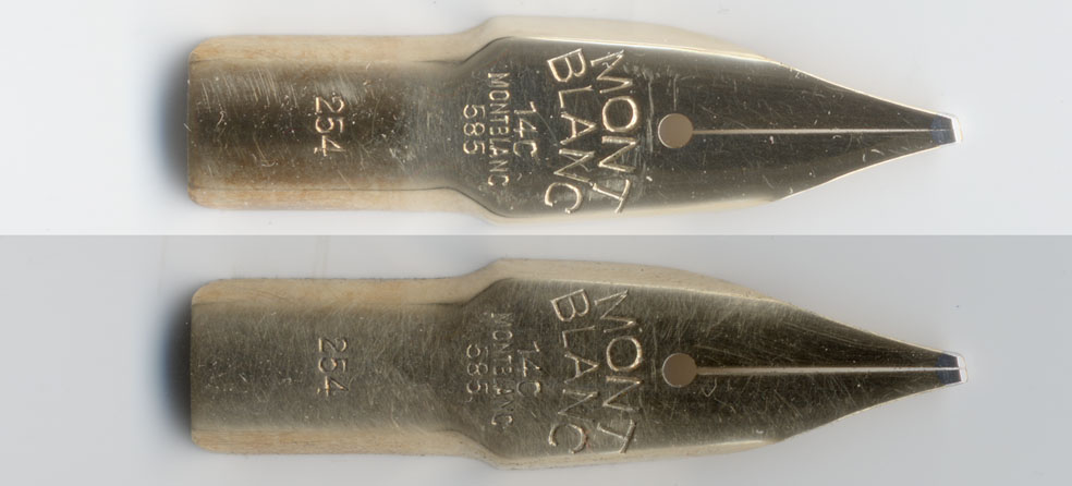 ひょっとしたらキャップにMontblancの文字が彫られた1954-1956年モデルの胴体と、1957年以降モデルのキャップとペン先&ペン芯をアセンブルした物かもしれない。