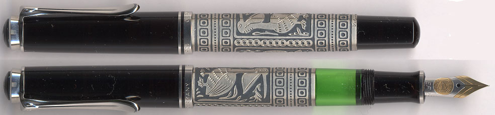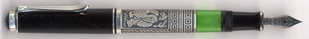 今回の依頼品は廃盤になってしまったM710。軸にはD5/46 JBとの刻印がある。この職人さんが5番目に彫った刻印のせいか、なかなか上手な図柄じゃ。一時不細工なペリカン顔コンテストがあったが、このペリカンは良い目の形をしている。