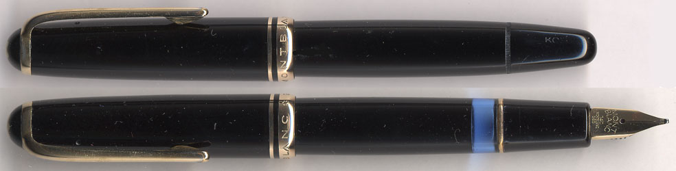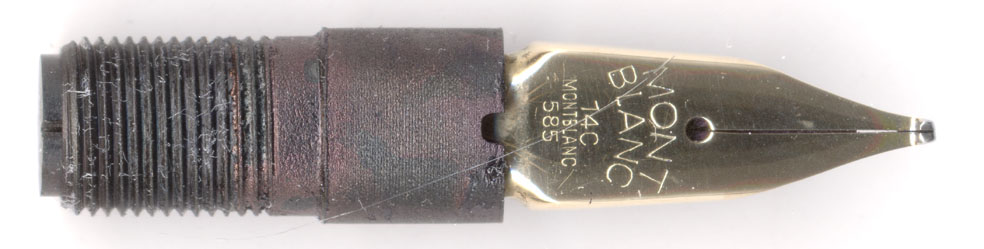 こちらがソケットに入った状態。No256はペン先とペン芯をゴム板でつまんで左に回せば左の状態で外せる。PelikanのMシリーズやAuroraと同じ方式じゃ。軸内の清掃には非常に便利。現行のNo.146やNo.149もネジで胴体にユニットを固定する方式なのだが、残念ながらネジ部分が糊で固められている。従ってピストン機構をはすして後ろからペン芯毎叩き出すことになる。何故このユニット方式をやめたのかな?