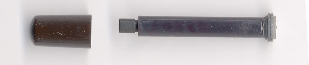 だが、これは不幸中の幸い。全部品が揃っているので、ピストンから心棒を抜けばOK!90度のお湯に入れて20分後に心棒を回しながら引っぱると・・・外れた!さっそく心棒を尻軸に押し込んだ。こんどはピストンの軸の内部を洗浄する必要があるので、ロットリング洗浄液を入れた超音波洗浄器にピストンを入れて約3分。