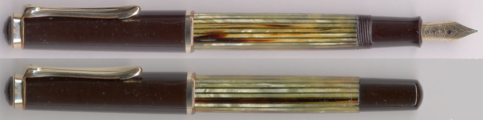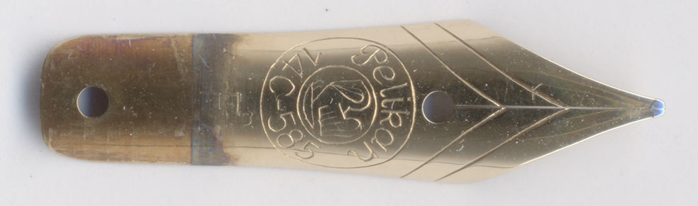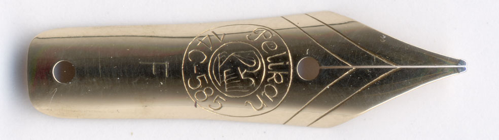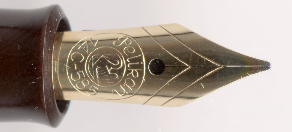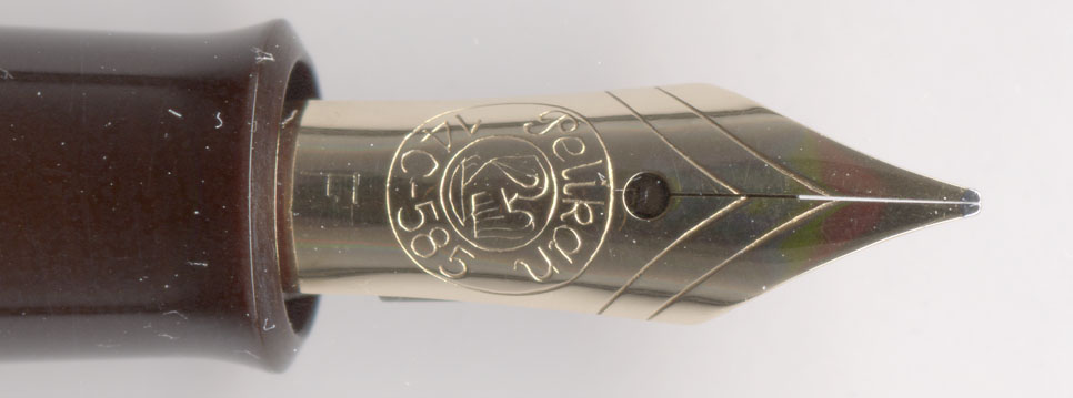 ペン先部分にも違和感があるので拡大してみた。形状からして400のニブよりやや小さく、140用のニブが付いているようじゃ。書き味も140そのもの。140と400では同じ径のソケットを使うので、こういう芸当が出来る。逆もあって、140に400用のペン先が取り付けられて売られている事もある。