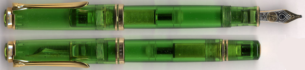 この万年筆には正式な名称は無いのかもしれない。ペリカンの緑本では、Pelikan M800 transparent green color というような表現しかしていない。当時の米国の消費者からのtransparent モデルへの要望に答えて米国に2000本、伊太利亜と仏蘭西にごくわずか出荷されたと書いてある。
