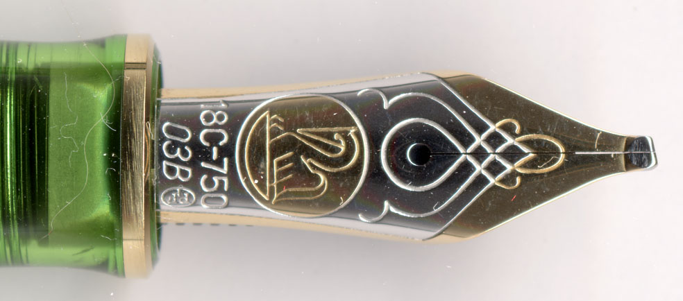 1991年ごろはPelikanのニブはp.f.マーク入り。もし無かったら取り替えられている事になる。マークの有り無しで書き味に変わりは無い。というか無く出来る。オリジナルならペン先の剛性が強い【p.f.無し】の方が多少硬い。この硬さを書いていて感じ取る事が出来る人は10人に1人くらい。拙者には無理じゃ。