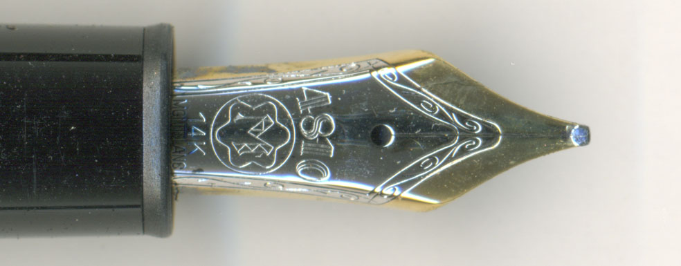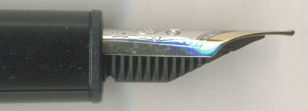 ここで疑問。現行のペン芯はそれ以前のペン芯より径が太く、そのままでは旧型の首軸には入らない。それでは何故、新型のペン芯+ペン先が、旧型の軸についているのか?その真相は後で述べよう。ペン先は14KのBB。現行モデルで非常に良いペン先じゃ。ペン先は昔ほど良いという一般論で語る人もいるが、そうではない。ペン先は使われている時代の書き手の平均的な筆圧を考慮してペン先の厚みや剛性を決めているはず。従ってボールペン実用化以降に発売された万年筆のペン先は厚くなっている。