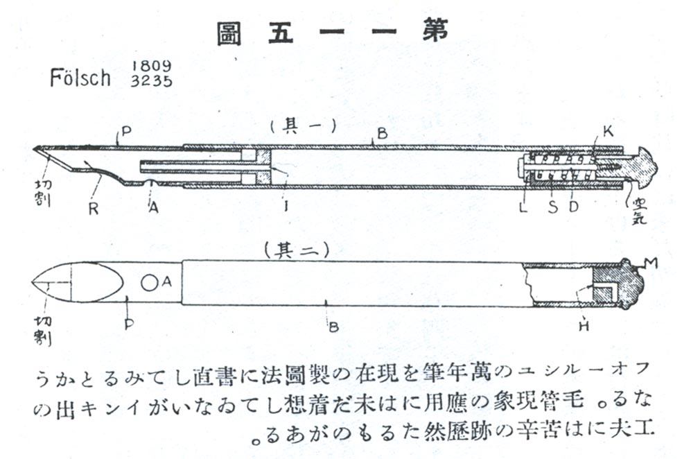 ¡¡¤³¤Á¤é¤Ï1809ǯ¤Ë¥¸¥ç¥»¥Õ¡¦¥Ö¥é¡¼¥Þ¡¼¤¬³ÍÆÀ¤·¤¿ÆÃµö¡£Å´¥Ú¥ó¤ÎȯÌÀ¤Ë¤Ä¤Ê¤¬¤ë¥¢¥¤¥Ç¥¢¤¬·ÇºÜ¤µ¤ì¤Æ¤¤¤ë¡£¡¡°ìËܤα©º¬¤ò°ìËܤΥڥó¤Ë»È¤¦¤Î¤ÏÉԷкѤʤΤǡ¢°ìËܤα©º¬¤Îξü¤Ë¥Ú¥ó·Á¤òºî¤ê¡¢¤½¤ì¤ò¼´¤ËǼ¤á¤Æ»ÈÍѤ¹¤ì¤Ð£²ËÜÊ¬ÍøÍѤǤ¤ë¤È¤¤¤¦¤â¤Î¡£¤¤¤ï¤ÐÂØ¤¨¥Ú¥ó¤ò¼´¤ËÁÞ¤¹Êý¼°¡£