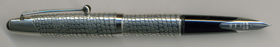 拙者が初めて作ってもらった特注万年筆が左の【パイロット・シルバーン・模様無】。当時のシルバーンは亀とか鶴とかの線画が彫ってあったのだが、お世辞にも上品とは言いがたかった。それに拙者は萬年筆の軸に絵を描くとか彫るとかは好きではない。模様塗りや模様彫りは大好きじゃが・・・・