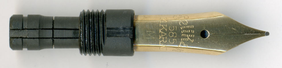 これが首軸に装填して、微調整を繰り返した段階。既に調整戻りでスリットは閉じている。しかしフェザータッチで書いてもペン先は見事に開いて大量のインクを供給してくれる。