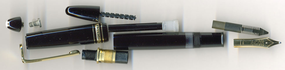 それに対して、この時代のMontblankは惜しみない素材を投入して豪胆さを演出している。高筆圧化に対して曲げの設計で対抗するのではなく、ペン先の厚みで対抗しようとしたのか・・・拙者が最も好きなニブというのはケチくささが無いからじゃ。それに引き換えヘミングウェイ以降のNo.149やNo.146系のコストカットニブはどうも寂しい感じがする。書き味には感心する部分も多いが・・・