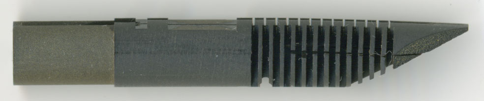 ペン芯は二段式。上半分と下半分の間に切れ目がある。これによってペン先とペン芯とを合わせる調整時間を短縮することが出来る。昔は【ペン先の反りに追随させる為の秘策】といわれていたが、実験の結果その効果が無いことが判明。【調整の生産性向上策】という情報はアメ横の販売店から教えてもらった。