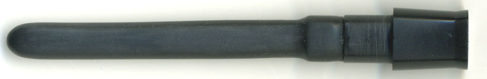 これが溶けたゴムサックを取り除いた直後の首軸じゃ。ゴムサックが黒化して溶け、首軸と同化している。