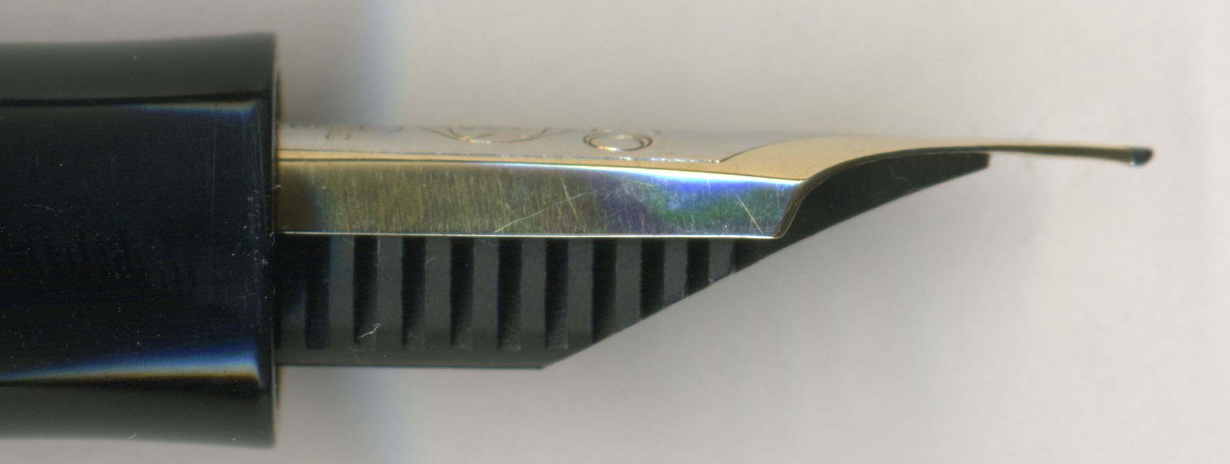 こちらはスリットを多少拡げた段階での図。このスリットの連続性と、先端部分の危うさはいくら眺めても飽きない。良い出来じゃ。ペン先が薄くても鍛錬されているので鋼のバネのような弾力がある。