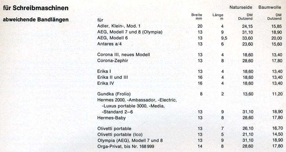 Natureseideというのはシルクのこと。シルクにインクを染みこませた物と、Baumwolle【コットン】にインクを染みこませたものがあったらしい。シルク製の方が5割以上高価なのできっと何かメリットがあったのじゃろう。丈夫で切れにくいとか、インクリボンに皺が発生しにくいとか・・・