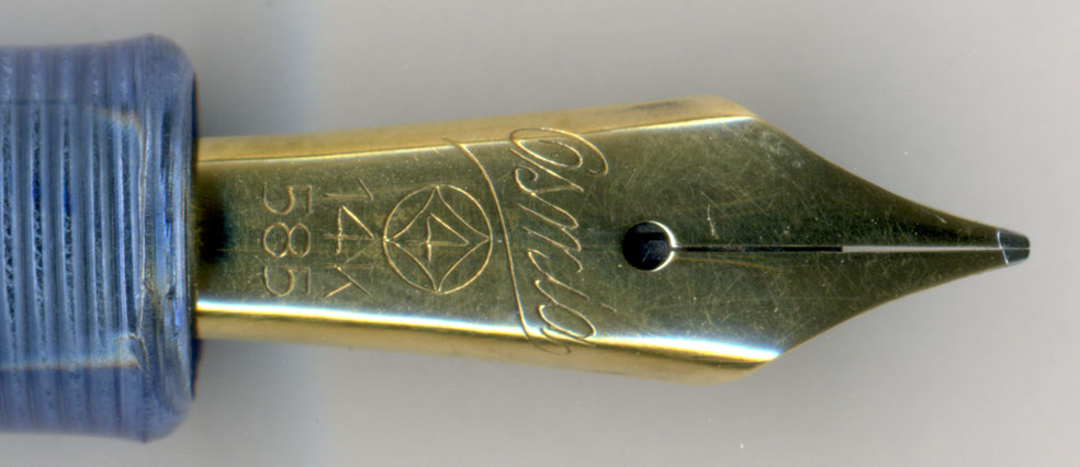 ペン先の拡大図を見ると、オブリークではないのに、ペンポイントは左側の方が長い。こういうおおざっぱさが実に良い。作りは独逸職人ぽいが、仕上げはイタリア的。