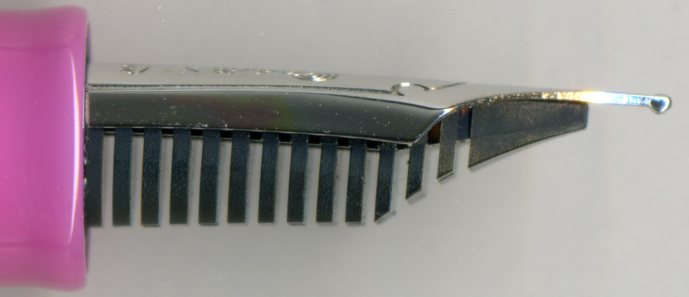 ¡¡¤³¤Î¥Ú¥óÀè¤Î²èÁü¤Ï¡¢¾åµ²èÁü¤ÎÉôʬ³ÈÂç¡£¼Â¤Ï¥¹¥¥ã¥Ê¡¼¤Îư¤¯Êý¸þ¤ËÂФ·¤Æ45¡ë·¹¤±¤Æ¥¬¥é¥¹¤Î¾å¤ËÃÖ¤¤¤¿¡£¶â¥Ú¥ó¤Î¾ì¹ç¤Ï¤³¤³¤Þ¤Ç¸÷¤é¤Ê¤¤¤¬¡¢¥×¥é¥Á¥ÊÅÕ¶â¥Ú¥ó¤Ï¤¹¤´¤¯¸÷¤ë¡£¤ª¤«¤²¤Ç¥Ú¥ó¥Ý¥¤¥ó¥È¤Î¤´¤¯¤ï¤º¤«¤Î¥¹¥ê¥Ã¥È¤ÎÍͻҤ¬É½¸½¤Ç¤¤Ê¤«¤Ã¤¿¡¦¡¦¡¦»Äǰ¡ª