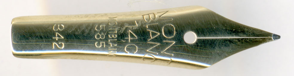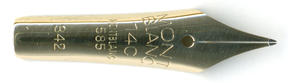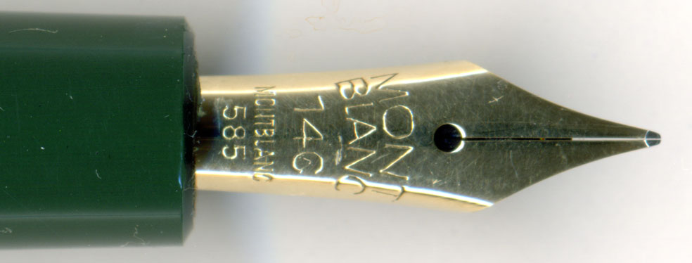 こちらは横顔。同じ時代のPelikanと比べると、ペン先先端のお辞儀の具合が極めて少ない。これがMontblancとPelikanの書き味の差を作っている。