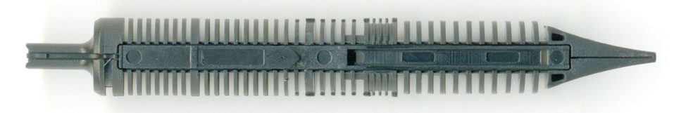 もう少し拡大してみると、毛細管現象の実験器具のように綺麗に先に行くほどスリットが詰まっている。何度も述べてきたが、萬年筆のインクは毛細管現象によってのみ供給されるものではない。筆圧によるポンプ運動でも供給される。