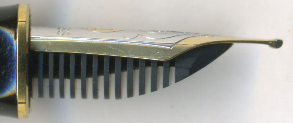 ¡¡No.149¤Ç¤Ï¥½¥±¥Ã¥È¤ÎŤµ¤Ï15Фǡ¢¥½¥±¥Ã¥È¤ÎÃæ¤Ë14ж᤯¥Ú¥óÀ褬Æþ¤Ã¤Æ¤¤¤ë¡£M800¤Ç¤Ï¥½¥±¥Ã¥È¤ÎŤµ¤Ï9Фǡ¢Ãæ¤Ë8.5ÐÆþ¤Ã¤Æ¤¤¤ë¡£¤³¤Î¥Ú¥óÀè¤ò²¡¤µ¤¨¤Æ¤¤¤ëŤµ¤Îº¹5.5Ф¬¥Ú¥óÀ褬º¸±¦¤Ë¤º¤ì¤ä¤¹¤¤¤«¤É¤¦¤«¤ò·è¤á¤Æ¤¤¤ë¡£¤·¤«¤â¡¢Pelikan¤Ï¼ê¤Ç¥½¥±¥Ã¥ÈËè³°¤»¤ë¡£Montblanc¤Ç¤Ï³°¤»¤Ê¤¤¤è¤¦¤Ë¤Ê¤Ã¤Æ¤¤¤ë¡£¤³¤Î¤¢¤¿¤ê¤¬Àß·×»×Áۤΰ㤤¤Ç¤¢¤í¤¦¡£