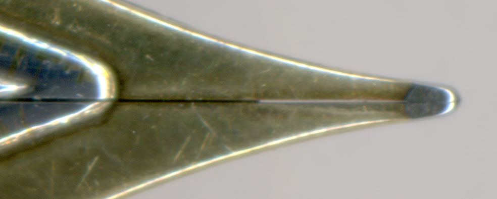 こちらは調整済のペン先。スリットは多少拡げ、スイートスポット周囲に心地良いオアシスを作り込んである。