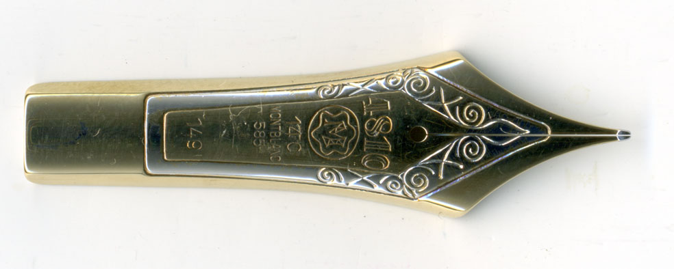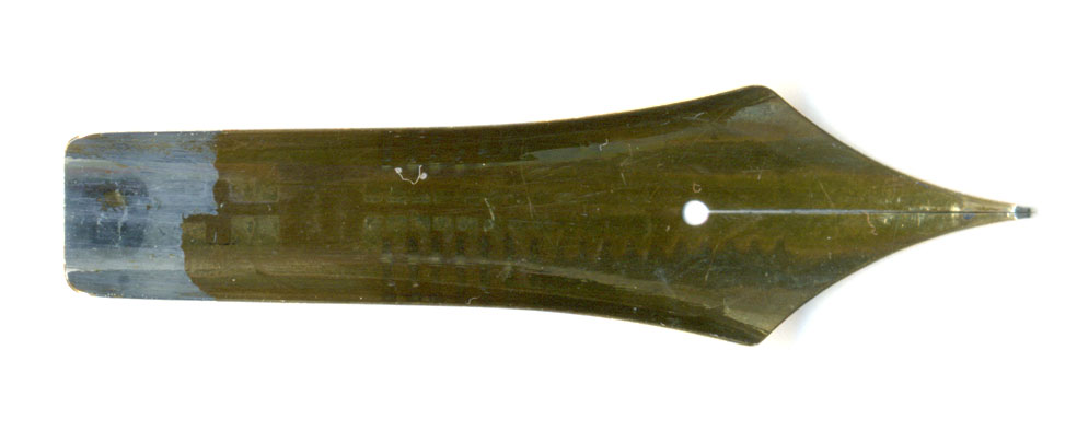 特にペン先はすばらしい状態。もちろん筆記するのはスリットが詰まりすぎているが、上から見た感じ、ペン先の拡大画像とも惚れ惚れするほど美しい。いくら日本での最高格付けを受けてもパイロットの大型ニブにこういう荘厳さは無い・・・不思議じゃ!