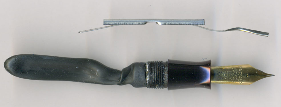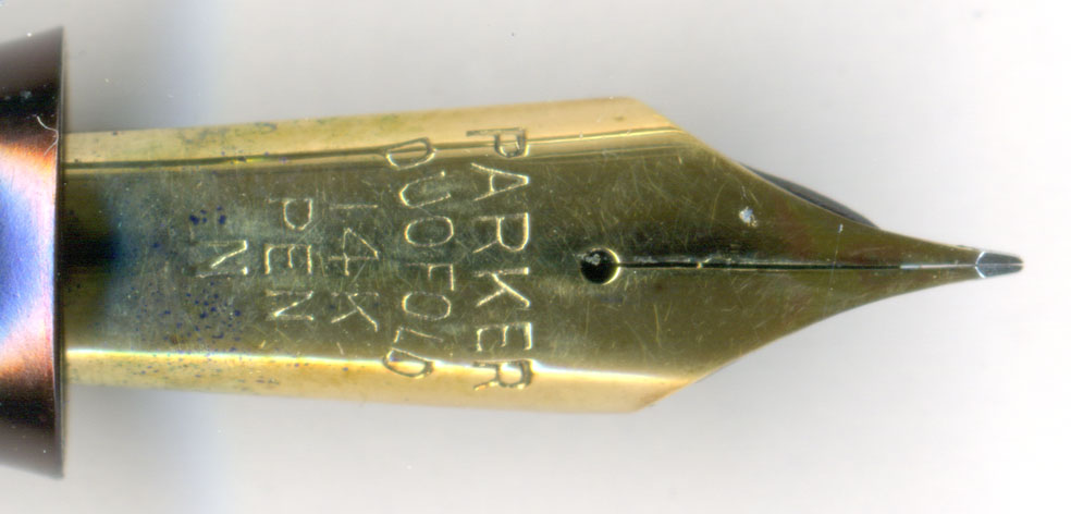 こちらがペン先の裏側。わかるかな?リチップしてある!どおりでParkerの柔らかさと違うはずじゃ。おそらくはペンポイントが小さいのが耐えられなかったのか、ペンポイントが欠けたかしてリチップしたのであろう。