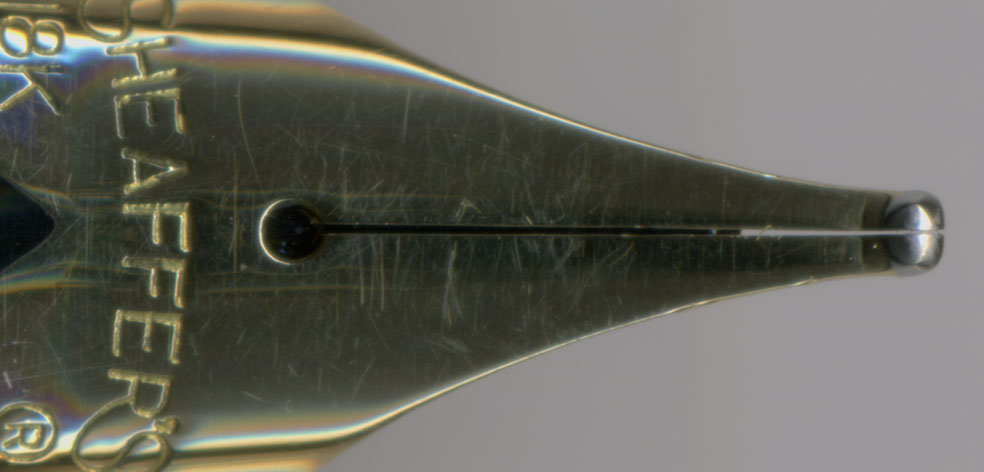 ¡¡Èó¾ï¤ËÌ¥ÎÏŪ¤Ê¡ÚB¡Û¥Ë¥Ö¡£Åö»þ¤ÎSheaffer¤Ï¥Ú¥ó¥Ý¥¤¥ó¥È¤Þ¤Ç¼«¼ÒÀ¸»º¤·¤Æ¤¤¤¿¤Î¤Ç¡¢Â¾¼Ò¤ÈÈæ¤Ù¤ÆÈó¾ï¤ËÂ礤ʶ̤À¤Ã¤¿¡£¤½¤ì¤ò¥¶¥Ã¥¯¥ê¤ÈÊ¢¤òºï¤¤¤À¤À¤±¤Î¤è¤¦¤ÊÂçÃÀ¤Êºï¤êÊý¡£¡¡¤è¤¯¤â¤Þ¤¡¤³¤ó¤Ê¼êÈ´¤¤Î¸¦¤®¤Ç¡¦¡¦¡¦¤È»×¤¦¤Î¤À¤¬¡¢¥¤¥ó¥¯¤òÆþ¤ì¤Æ½ñ¤¤¤Æ¤ß¤ë¤ÈĶÉý¹¥Ë¥Ö¤Î¥¿¥Ã¥Á¤Ï³ê¤é¤«¤Ç¤Ê¤«¤Ê¤«Îɤ¤¡ª¤¿¤À¤·¥¤¥ó¥¯¤Î½Ð¤¬ÉÕ¤¤¤Æ¤³¤Ê¤¤¤Î¤Ç¡¢¤È¤Æ¤â¥Ì¥ë¥Ì¥ë¤È¤Ï¤¤¤«¤Ê¤¤¡£¤ä¤Ï¤ê¥¹¥ê¥Ã¥È¤ÎµÍ¤Þ¤ê¤ò²ò¾Ã¤»¤Í¤Ð¤Ê¤ë¤Þ¤¤¡£