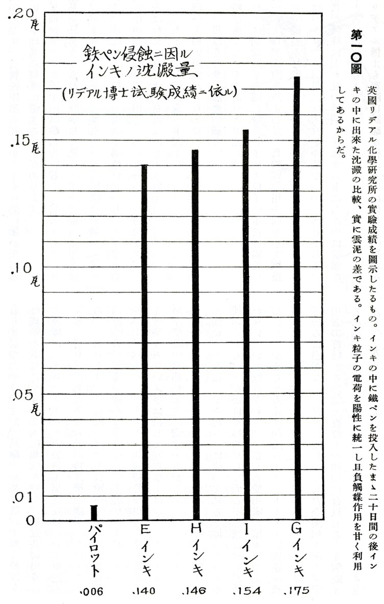 当時日本はおろか、欧米でもインキ粒子の電荷を陽性に統一して自然沈殿を防止し、かつ、負触媒作用を利用して鉄ペンの浸食を防御するという新原理によって作られたインクはなかった!