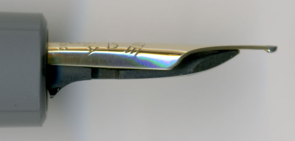ペン先を多少丸めて猫背にし、ペン芯を多少上に反らせたうえで、両者を併せて隙間が出ないようにする必要がある。