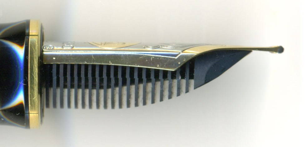 このM1000のペンポイントを見て驚いた!ペンポイントがずいぶんと薄いのじゃ。まるでイタリックみたい。当初は米国の有名な研ぎ師の手による物かと思った。