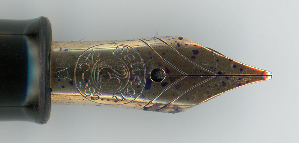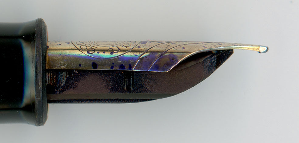 この萬年筆にも背開きの症状がある。先端部は腹はぶつかり合っているが、背中に隙間が出来ている状態。いわゆる背開き!もっとも背開きは必ず解消しなければならないものではない。事実、背開きであっても腹を調整するだけで問題が解消する事もある。