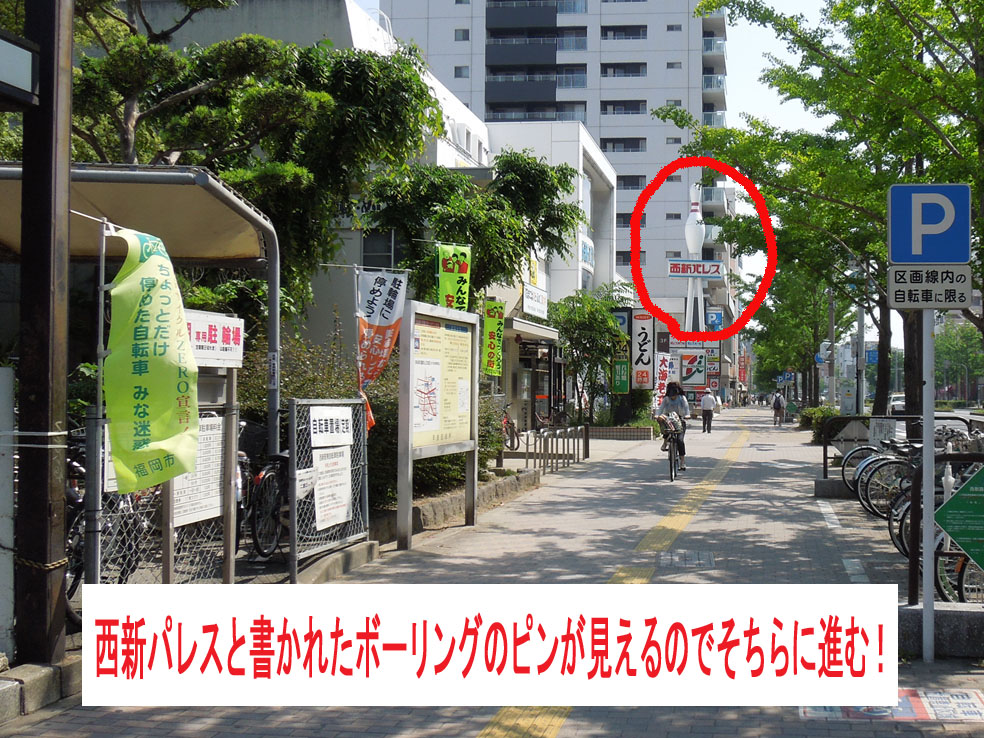 地図 ===> ココ! 西新パレスボールの三階に会場があります!