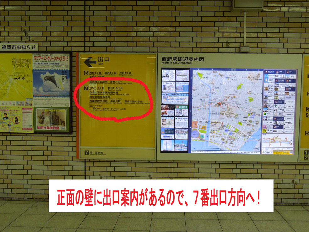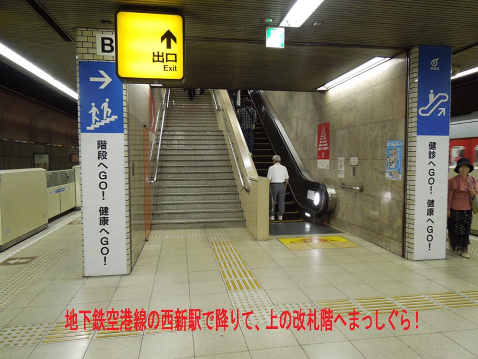 地下鉄空港線の西新駅のホームから会場までの画像です!