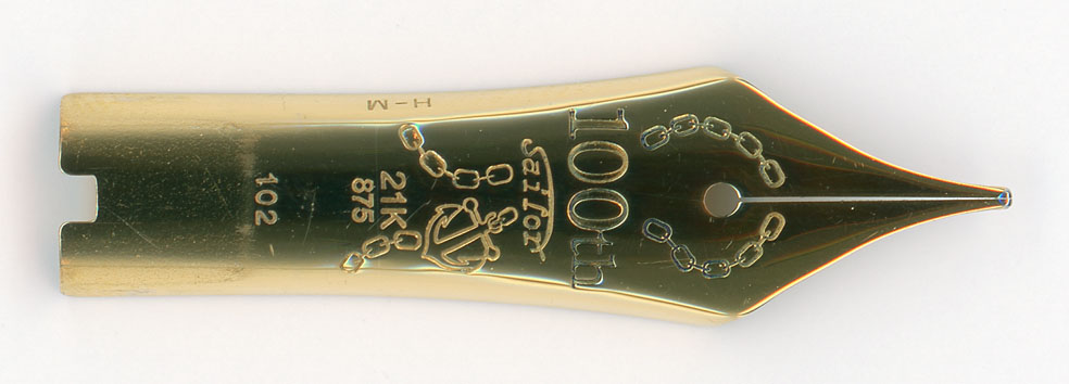 こちらが少しだけスリットを拡げたペンポイントの状態。実は一旦もっと拡げて調整したあとで少し絞ってある。これがMの調整のコツ。インクドバドバ好きなら簡単だが、ほどほどのインクフローで滑らかな書き味を求める人には、スリットを開いて調整したあとで、少しスリットを絞るよい。これは理屈ではなく、経験則。そういう意味では大勢に調整を崩してもらった方が書き味が良くなるというのも、経験則・・・というか妄想かもしれない。