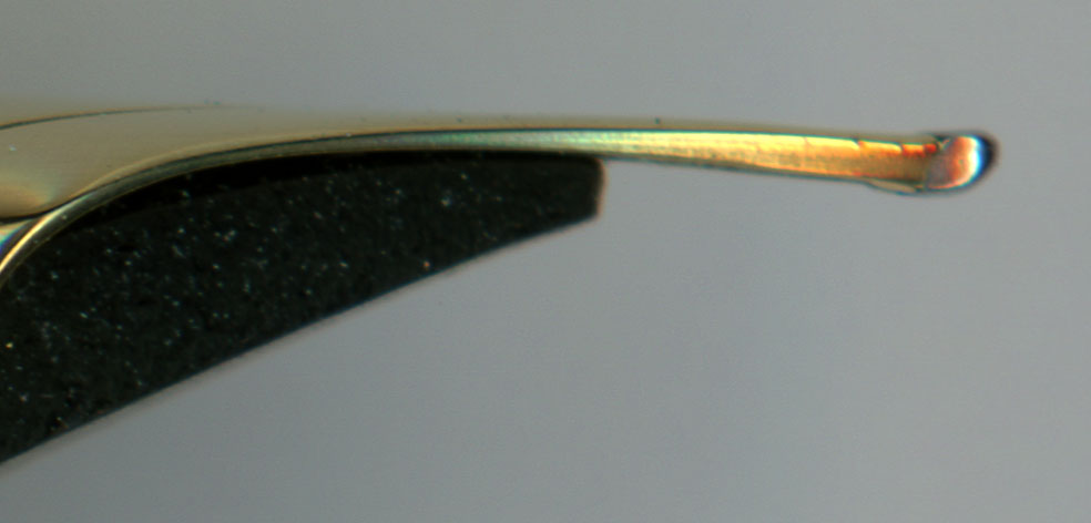 しかし、このようにペンポイントの根本にまで傷を付けられては傷を完全に消すのは困難!やり過ぎるとペンポイントがポロっと逝ってしまう。