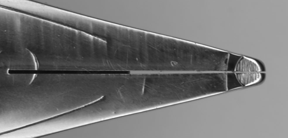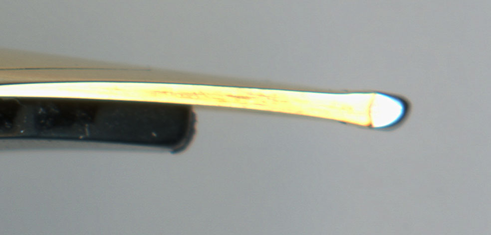 ちなみに、ペン芯の裏にある大き凹は空気穴。筆記時にはここから入った空気がペン芯内部の空洞を通じてインクタンク、あるいは、カートリッジ内に空気を送り込み、その分だけインクを送り出す構造。