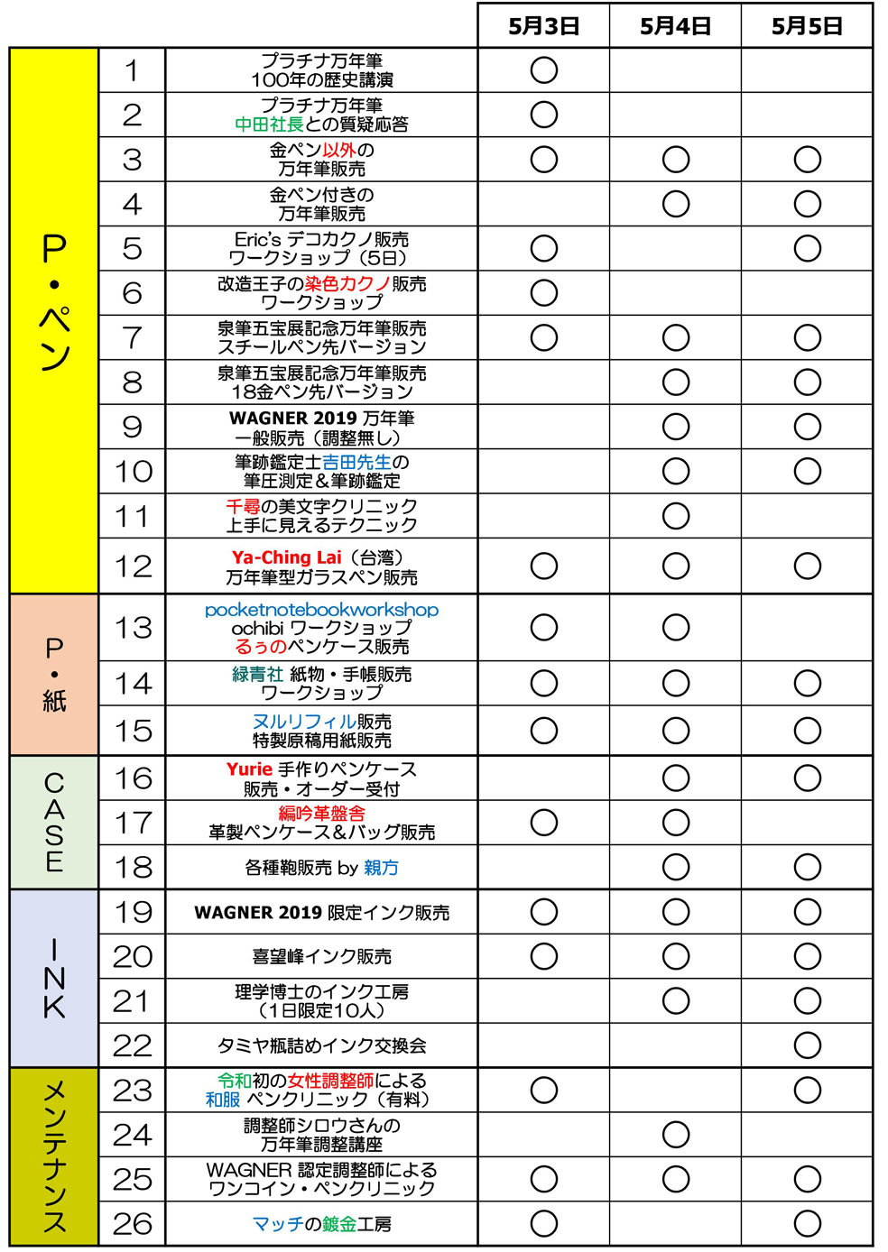 ペントレ3日間の行事一覧