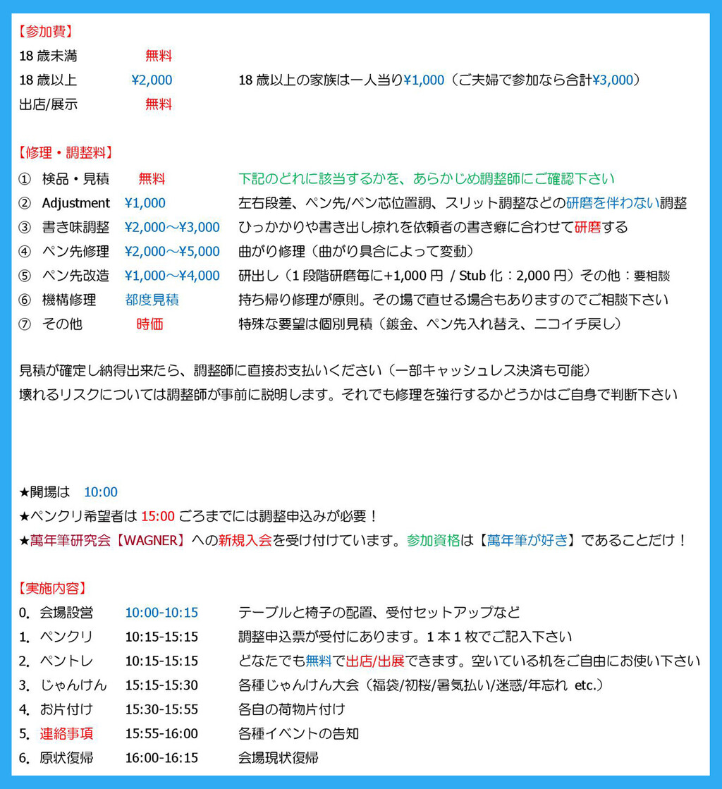 会場へ入るには、萬年筆研究会【WAGNER】への会員登録が必須条件となりますが退会も再入会も自由です。