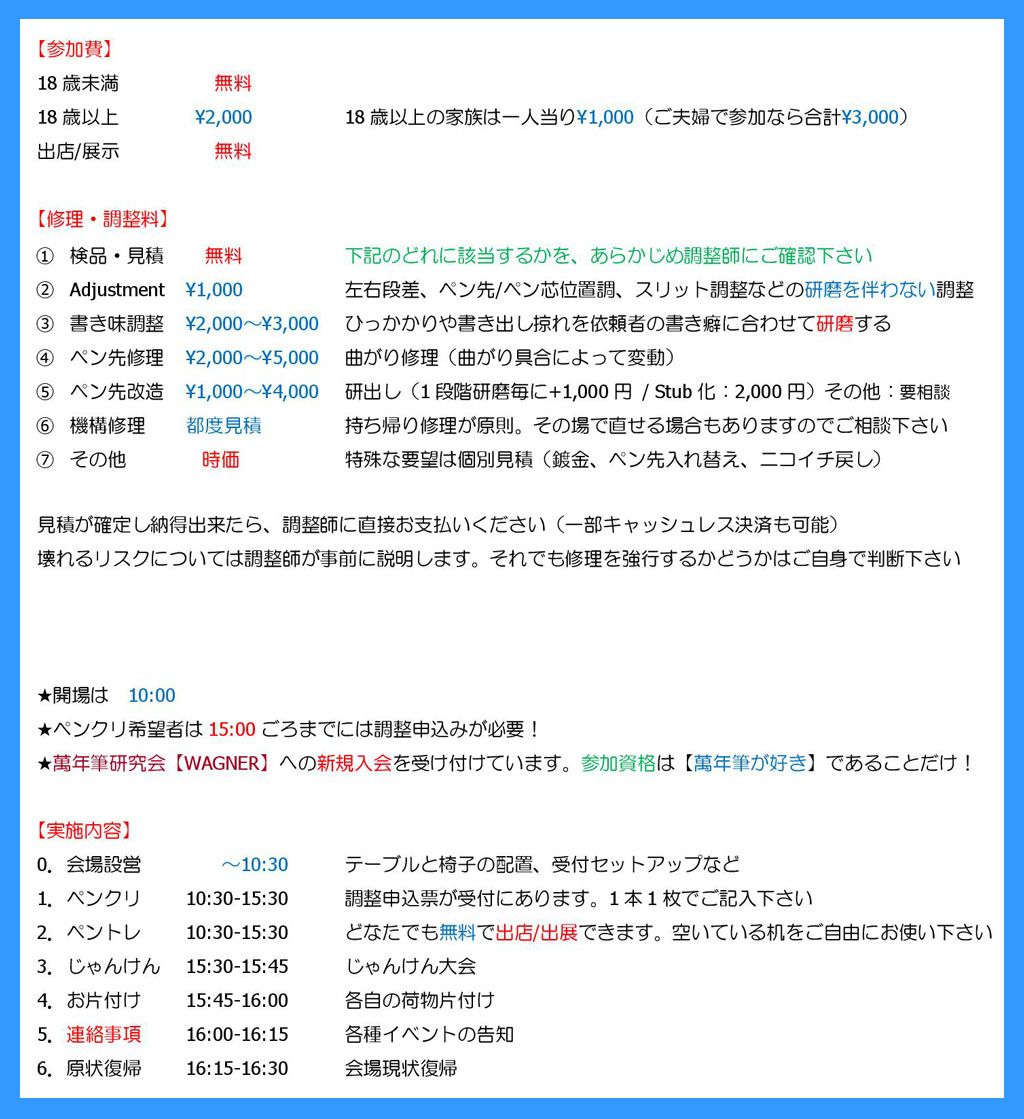 会場へ入るには、萬年筆研究会【WAGNER】への会員登録が必須条件となりますが退会も再入会も自由です。